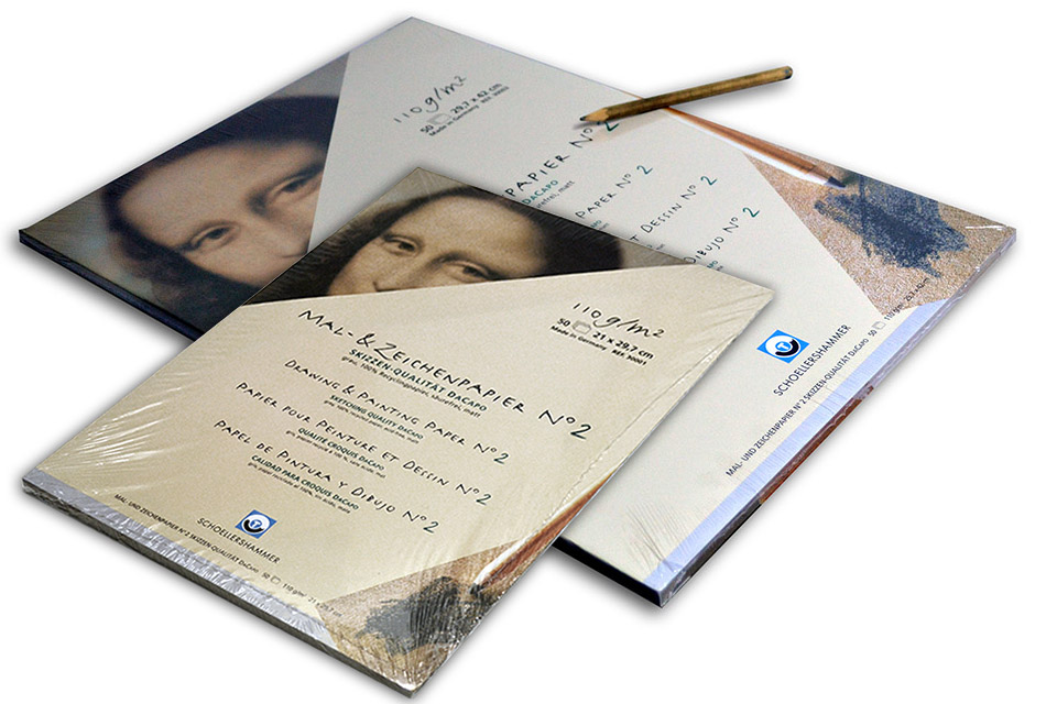 Papel de dibujo A3 y A4 de 110 gramos, calidad esbozo. 50 hojas, 100% reciclado.