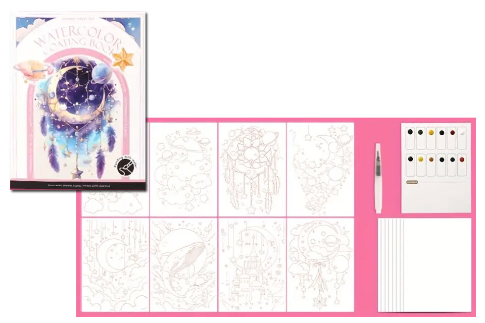 Libro para colorear con acuarela “Sueño Espacial”