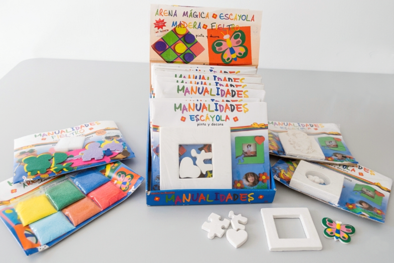 Expositor manualidades de escayola, arena y fieltro