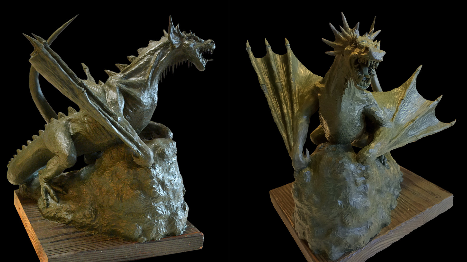 Luego le echas imaginación, claro. Pero las garras, la constitución ósea, la distribución de las alas y otros mil detalles serán más o menos creíbles, porque tendrán una lógica anatómica. Y en la representación de cualquier figura la anatomía lo es casi todo. Es la que nos dice que los cuerpos en reposo son simétricos, que los músculos en flexión se contraen, que los cuerpos tienen peso y que los dragones auténticos tienen cara de mala uva. En mi galería de figuras podéis verlo en fotos, creo que efectivamente está bastante cabreado.